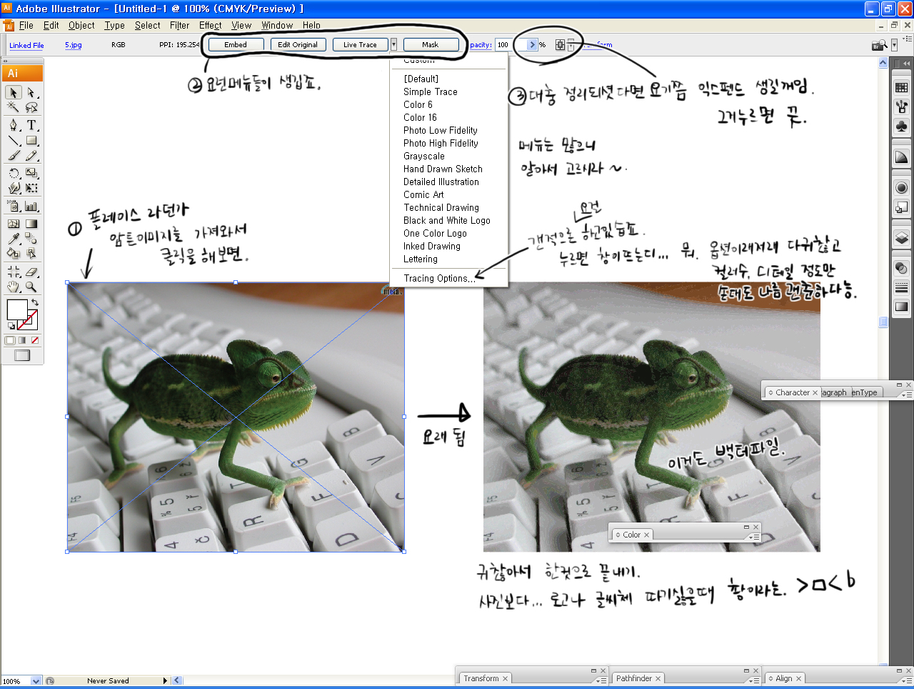 기능들중에 픽셀이미지를 백터이미지로 바꿔주는게 있습죠.