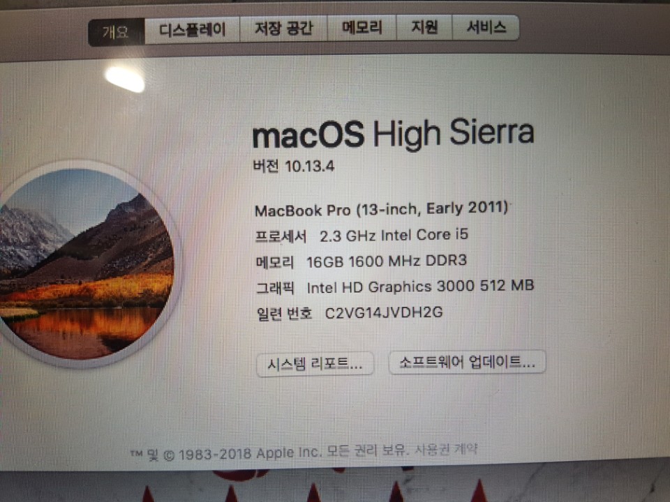 맥북프로 13인치, Early2011 램16기가 ssd512