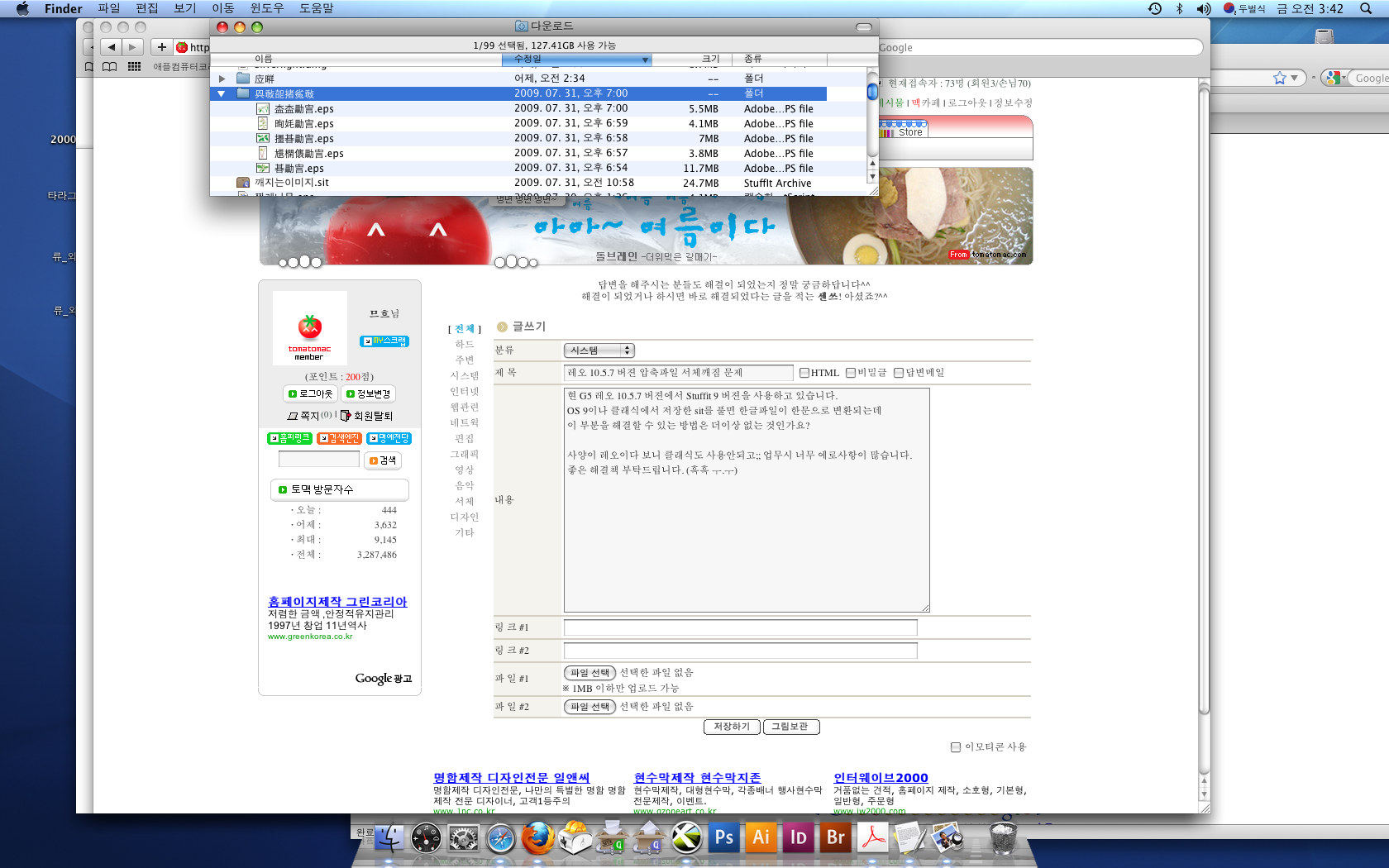 현 G5 레오 10.5.7 버젼에서 Stuffit 9 버젼을 사용하고 있습니다.