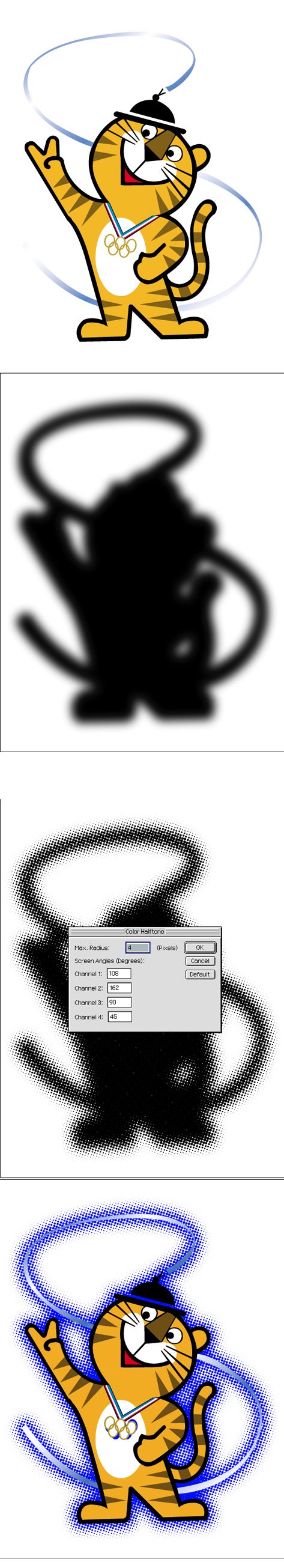 2. 그채널을 필터>픽셀>컬러헬프톤 여셔서 유미님이 말씀하신대로 망점의 적당한 크기를 정하신후만듭니다.