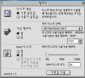프로그램을 모두 열었을때 사용가능블럭(남은메모리)가 최소 50MB~100MB정도는 남아 있어야 Mac OS(한글시스템) 메모리가 유동적으로 움직일수 있습니다.