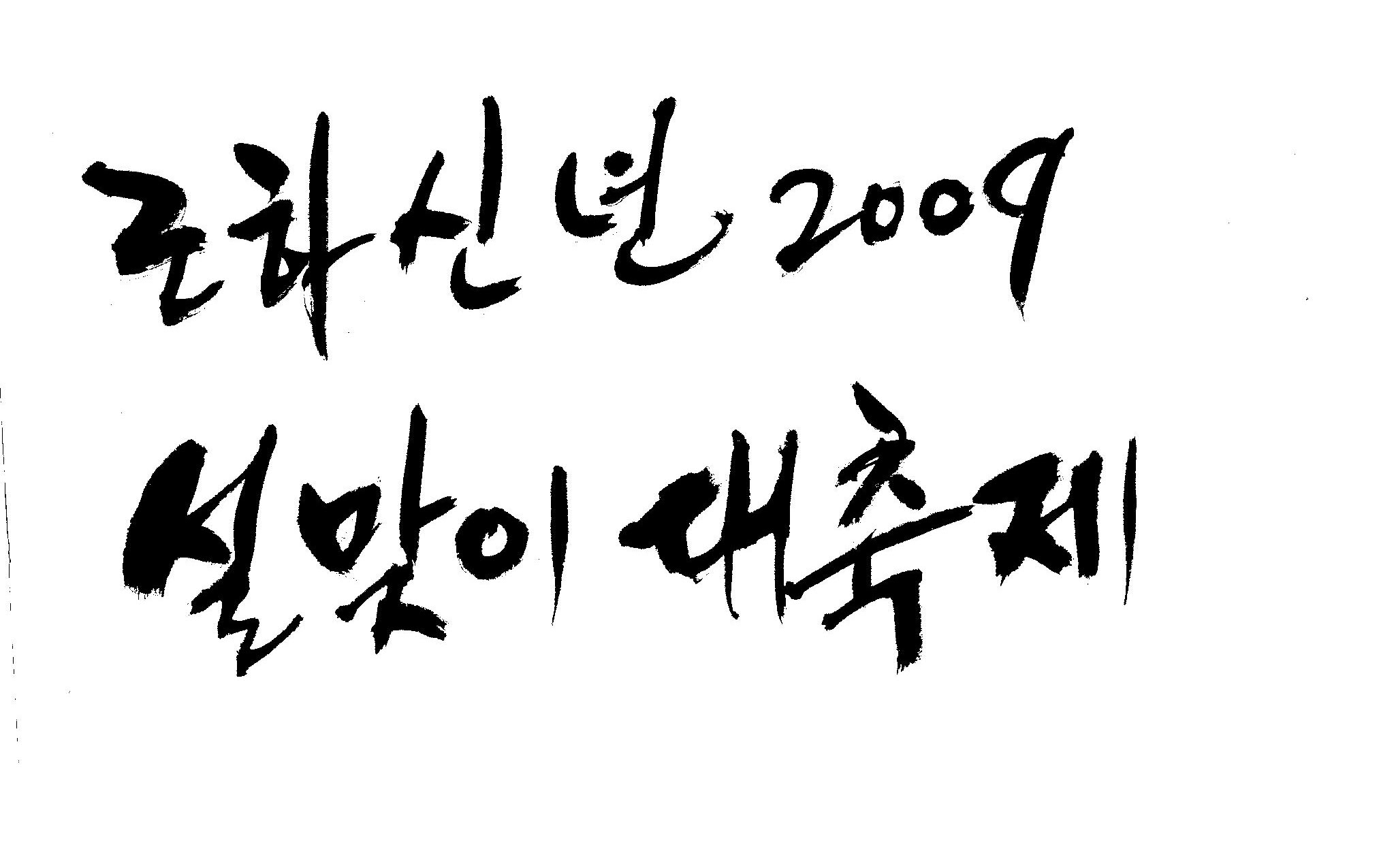 근하신년 2009 설맞이대축제 캘리 부탁드려요. 김철호 일반 3 16522 2009.01.14 10:45 > > A3 전단지 타이틀로 쓰려고 하는데요. > > ''근하신년 2009 설맞이대축제'' 캘리 부탁드립니다. > > 많은도움이 되주셔서 감사합니다. > > 유용하게 쓰세요..