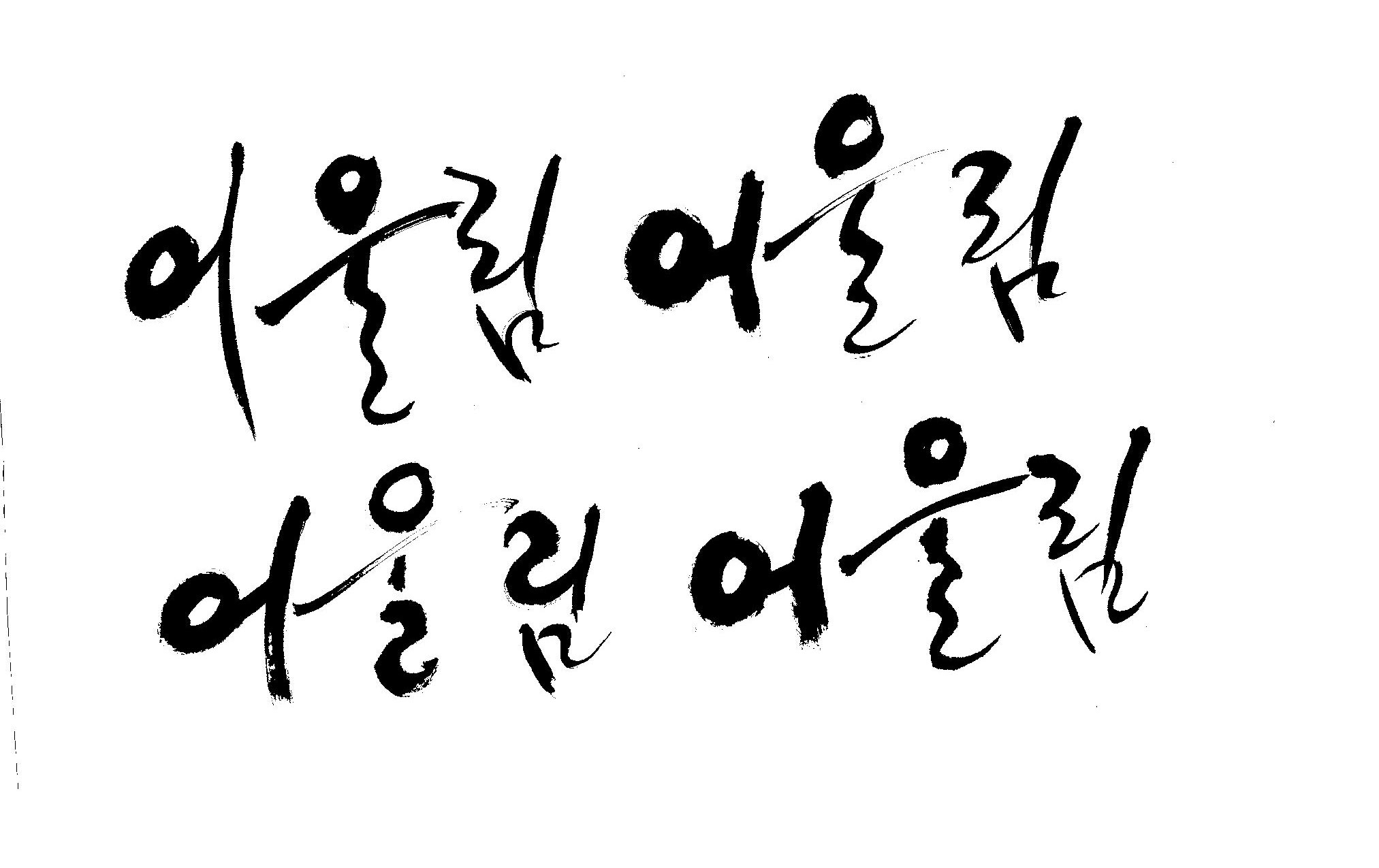 켈리 부탁좀 드릴께요~ 김철호 일반 0 11214 2009.01.14 10:49 > > > > > 책표지에 나갈 글씨로 '어울림'이란 켈리를 쓰고싶은데요... > > 도와주세요~ > > > 좋은 글이라서... > 긴....습작시간이 있었지만 > 결과물이 왜소하네요 > 유용하게 쓰시길... >